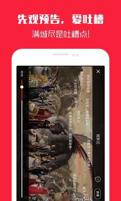 2.提供最新的电影相关资讯和预告片,让您在观影之前抢先了解影片最新资讯,精彩预告让你提前享受影片的视听感觉。并且观看预告时可时时发送弹幕,享受在线吐槽乐趣。