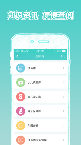 专业丰富的知识库,让家长快速查询学习疫苗、小儿疾病、育儿知识、月子保健等相关知识。