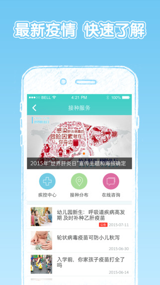 2.提供疫苗接种温馨提醒,权威专家在线咨询,知识资讯便捷查阅,育儿心得圈子交流,最新疫情快速了解,地理定位就近接种等服务功能。