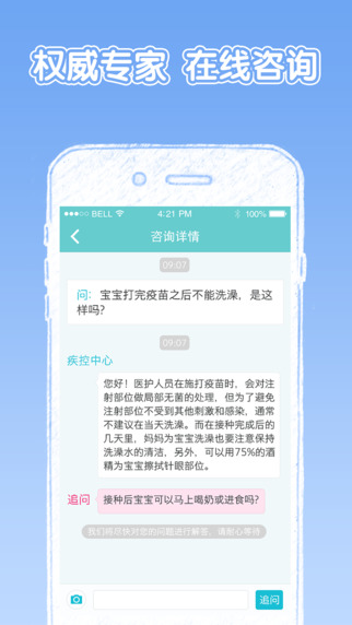 家长遇到关于疫苗接种问题可直接在平台上咨询当地疾控中心权威性的回答,让家长及时了解宝宝情况,放心接种。
