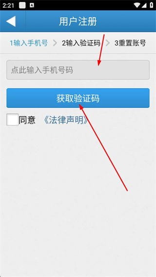 3、输入手机号码,后续输入验证码即可注册。