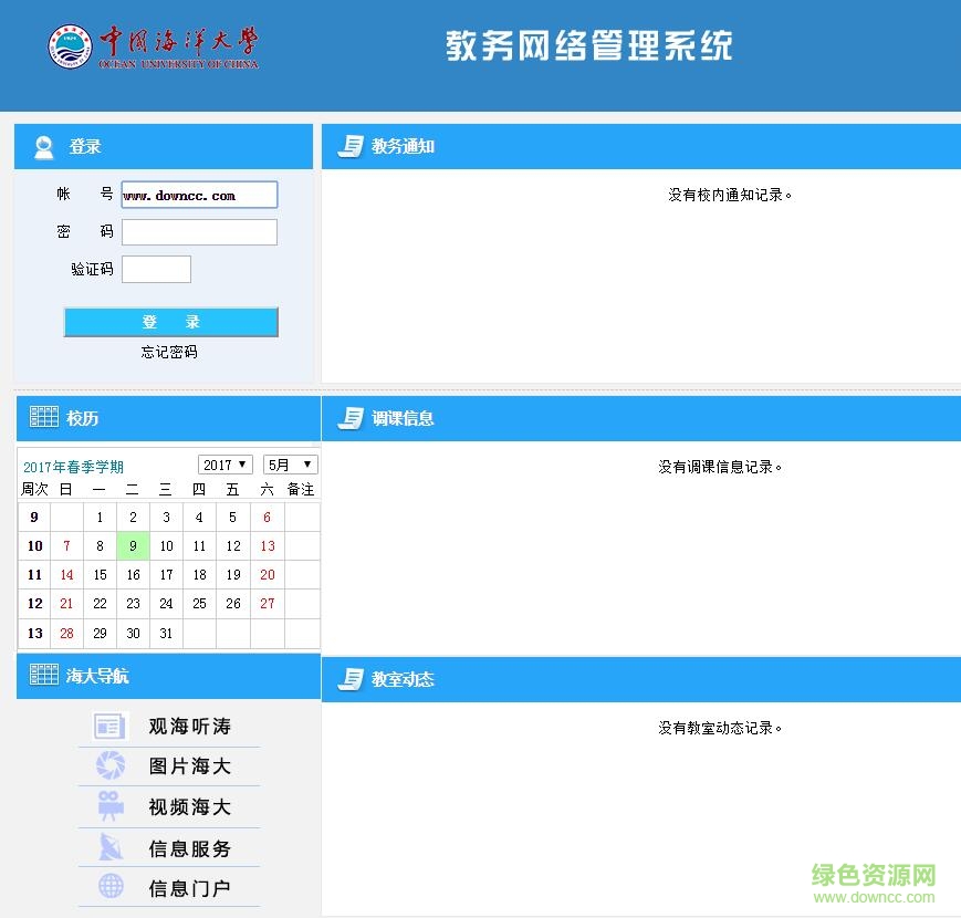 中国海洋大学选课系统网址是由绿色资源网小编为大家整理的官方选课登陆平台!学生们通过账号登陆后就可以开始选课了!提供了校园日历服务,可以查看最新的课程信息。快来本站收藏吧!