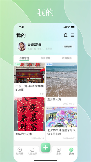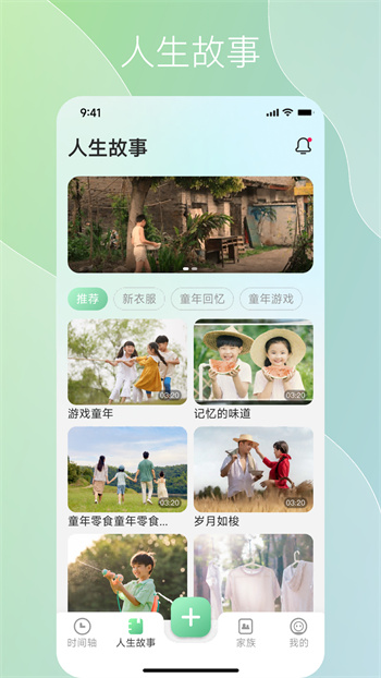 用户可以运用平台的时间轴记录生命中的每一个篇章,也可为家族祖辈和父辈整理收藏他们的芳华记忆,打造良好家风传承的桥梁,为后代留下宝贵的精神财富。