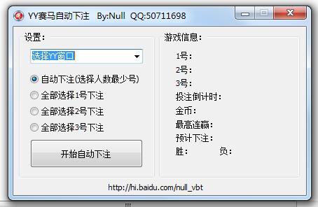 YY频道赛马游戏自动下注工具是一款YY赛马下注器,界面简洁操作简单,玩家打开后可以自动投注,欢迎下载使用。