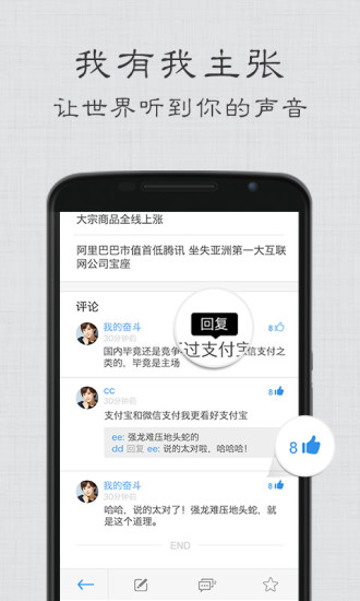 8、跟帖评论:随心表态,互动交流,我们提供给你最自由的讨论交流平台。