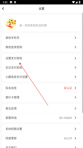 3、在设置界面,点击设置支付密码选项,进入支付密码设置页面。