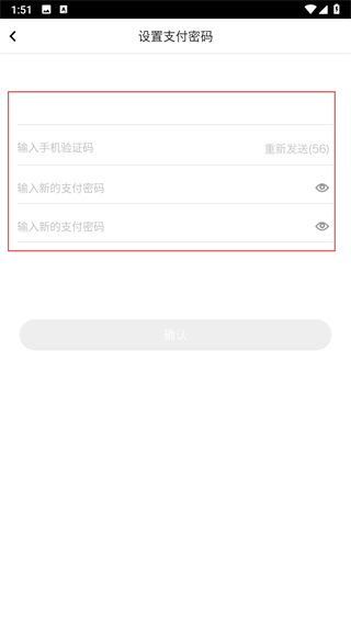 4、在该页面,输入手机验证码,接着输入新的支付密码,点击确认即可。
