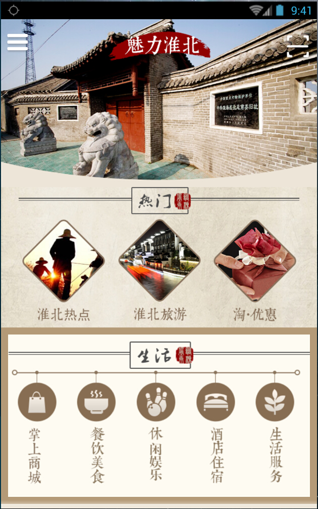 魅力淮北是一款集城市热点、娱乐、购物、休闲、旅游及美食等为一体的手机客户端。全面展示淮北当地的热点信息、民生起居、旅游景点等相关信息。