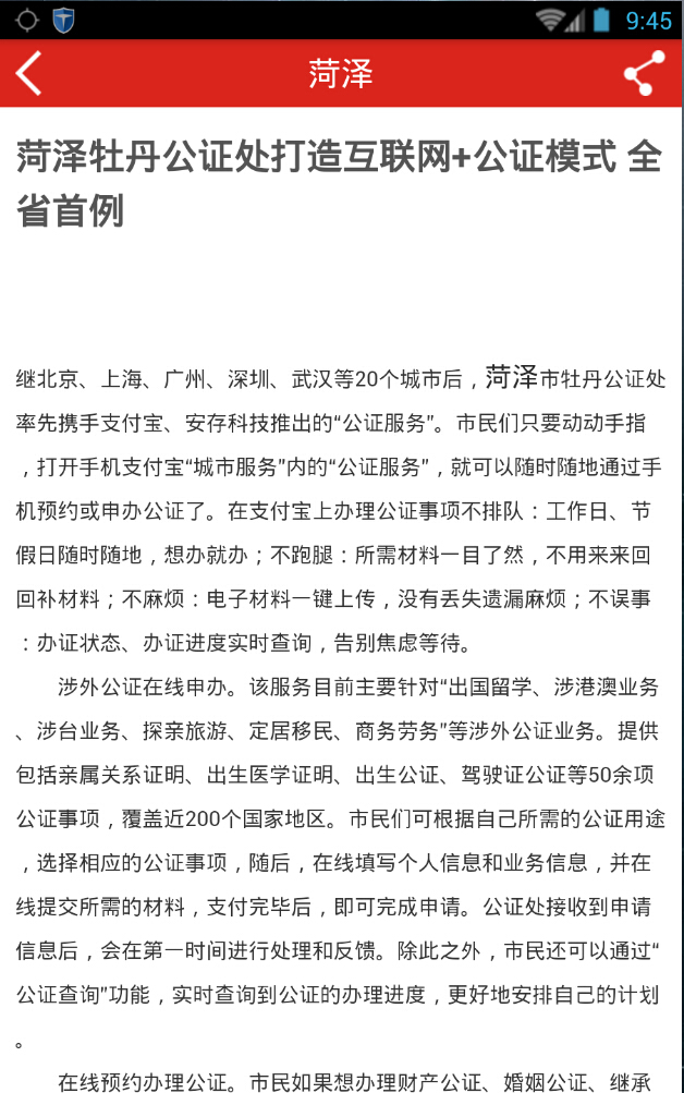 1、菏泽资讯,获取第一手的本地新闻资讯,支持将资讯进行分享到朋友圈等社交圈