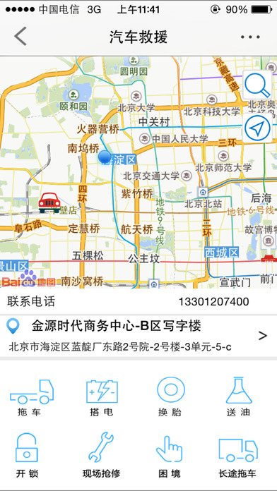 3.支持一键呼叫汽车救援功能,通过手机精准定位,方便快捷。