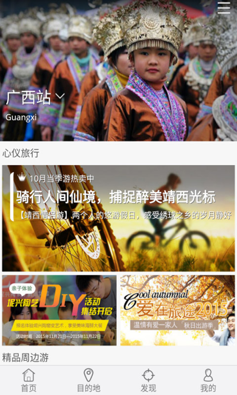 2.周末短途游:海量新鲜好去处,带你周末玩遍广西,郊游、乡村游、渔家乐、自驾游统统有,预订门票、酒店套餐便宜又方便,让你周末不再做沙发土豆。
