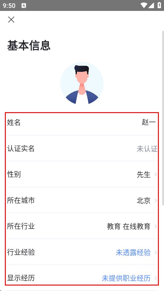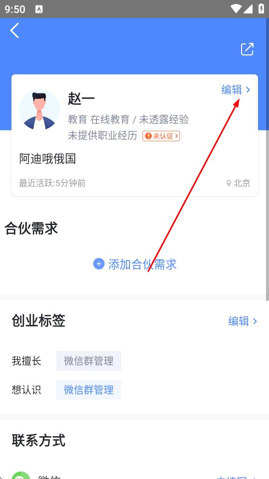 3、进入编辑资料页面后,点击需要编辑的信息区域旁的编辑选项。