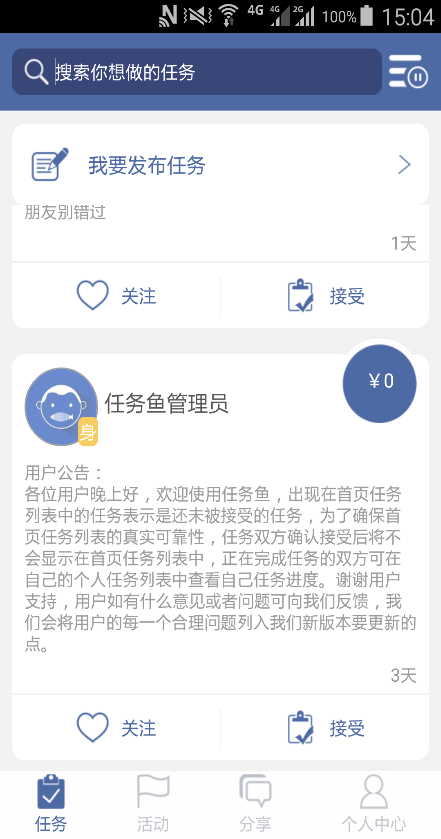 任务鱼是一个以发布任务和接受任务为主的真实可靠安全的微型兼职社区。