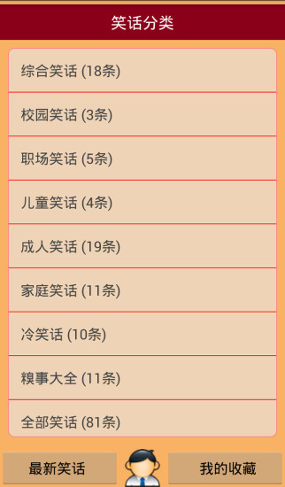 简单实用的笑话下载查看工具,通过此App可以随时查看实时更新的笑话信息,同时可以对笑话进行点赞、收藏等操作,点赞和收藏等信息可以更新到APP后台数据库,收藏的笑话可以保存在APP所在手机中,可以进行离线查看。