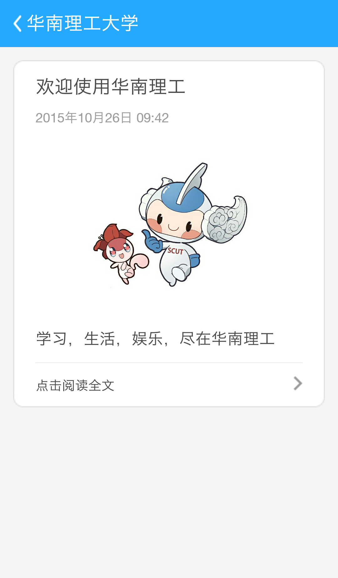 “华南理工”APP 2.0版本,是华南理工大学于2015年重新上线的校园移动门户APP,新版本的APP启用了新的系统平台,在原有的功能基础上增加了消息推送、讨论圈子等功能。就业在线已经率先入住APP为同学们提供第一手的招聘就业咨询。