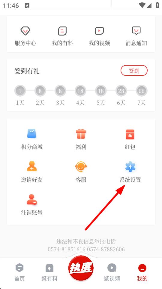 2、在个人中心页面,点击系统设置选项,进入设置页面。