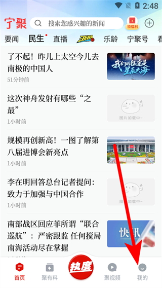 1、在宁聚app首页,点击右下角我的选项,进入个人中心页面。