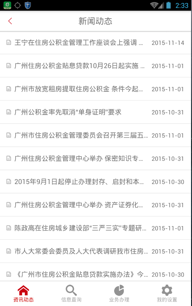 1、资讯动态:包括新闻动态、政策法规、办事指南、网点信息、存贷款利率、贷款计算器,无需登录可查阅。涉及贷款、提取等服务的板块,需要用户用公积金账号、密码登录。