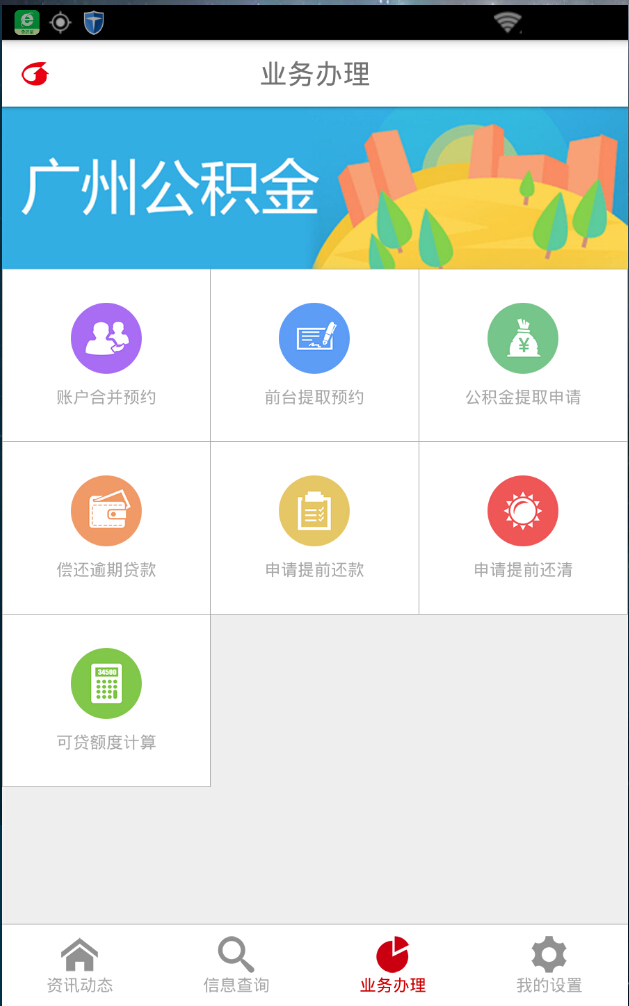 应用包括资讯动态、信息查询、业务办理等栏目,今后通过移动端即可轻松完成掌上查询、手机预约与提取申请等业务。移动端新增的偿还逾期贷款、申请提前还款、申请提前结清三项业务