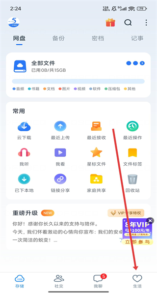 1.存储:网盘首页UI全新优化,文件分类更清晰,找文件更快更顺手。