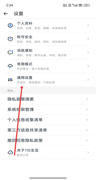 3、设置界面选择“通用设置”,进入通用设置页面。