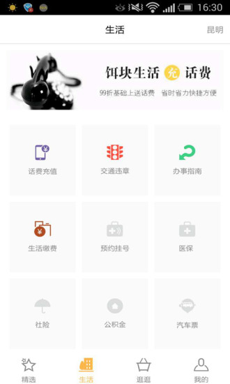 2.【生活】话费充值、交通违章查询、办事指南、水电燃气和有线电视缴费等功能俱全生活是如此便利简单。
