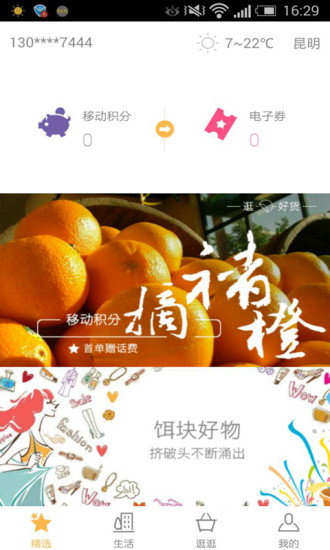 4.【逛逛】好货各种优惠商品汇聚于此,移动积分便宜兑;好店精品门店推荐、优惠活动一览无余;好吃新鲜美食第一时间知晓。