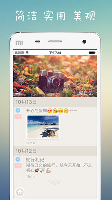 不仅是一款小清新的日记应用,还是你的生活好帮手:待办事项,记账,日历,日子,提醒,让你每天的生活都如此轻松多彩!