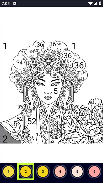 1、按照图片上面的数字去进行点击的操作,涂色完成之后就能完成自己的作品;