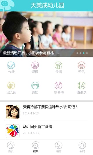 视频查看、入园出园、课程安排、作业安排、膳食健康、请假等与PC实时同步查阅,超便捷,更随心。