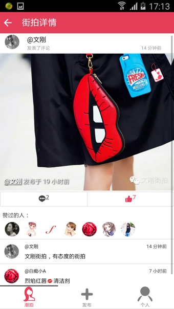 1.把相册里的时尚图片分享到潮拍,让其它用户有机会欣赏流动的时尚。