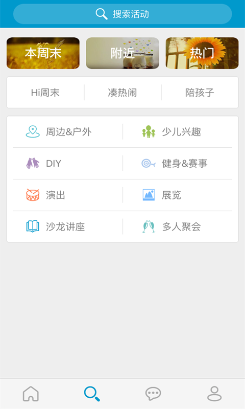 Hi周末app是一款周末出行类手机软件,这里含有各种适合周末的活动,包括少儿兴趣、演出、展览、多人聚会、健身和赛事、多人聚会等,活动种类丰富,选择性多,让你度过快乐的周末,喜爱的朋友赶快到绿色资源网下载体验吧!