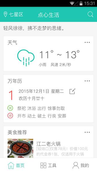 点心生活app是一款生活服务小工具合集,汇集天气,外卖,快递等各类生活查询工具,一个应用轻松搞定生活大小事务,手机在手,万事无忧,欢迎下载体验。