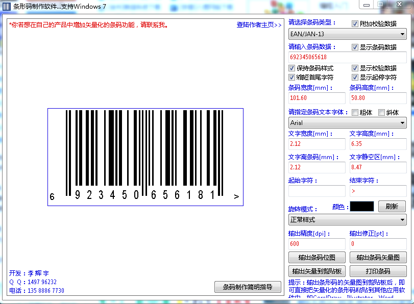 FreeBarcode是一个支持数十种常用条形码且完全免费的条形码制作软件,支持Win98/2K/XP/Vista/Windows 7等系列操作系统。该软件制作的条形码,可直接粘贴到coreldraw、illustrator、Word、wps、Excel、Powerpoint等应用软件中。与其他软件不同的是,该软件制作的条码,完全基于矢量图形技术:当你把该软件制作的条形码粘贴进CorelDraw等矢量图形编辑软件时,你可以拆解条码的每一个Bar!