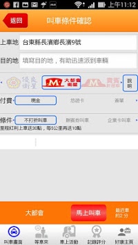 2.操作容易: 可利用手機自動GPS定位後,按下"確認"即可叫車。