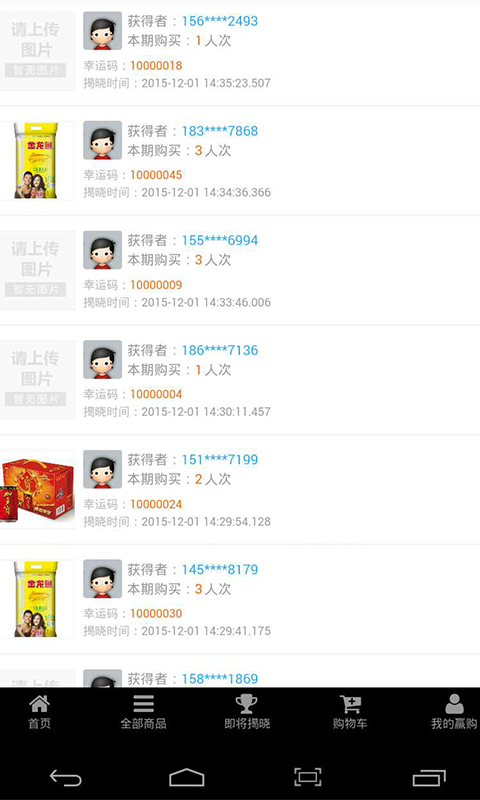 3、当一件商品所有“等份”全部售出后计算出“幸运赢购码”,拥有“幸运赢购码”者即可获得此商品。