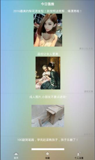 在您等公交挤地铁,闲下来的时间,不妨打开本软件看一篇文章消磨下时间,文章聚集分类APP平台,它精选了最热门的头条文章,由于头条精选有关搞笑,创意,旅行,美食,生活,情感,汽车,人生,辣妈,养生,科技等今日头条热门微资讯。