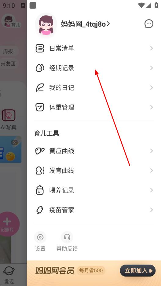 1、在妈妈网孕育App首页点击底部的记经期选项,进入经期记录页面。