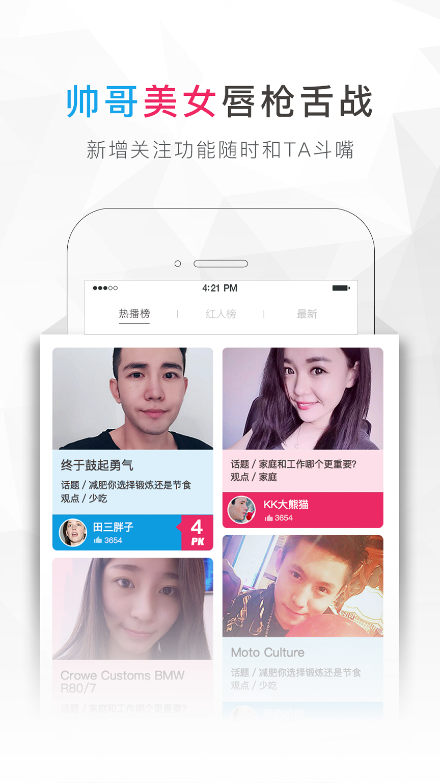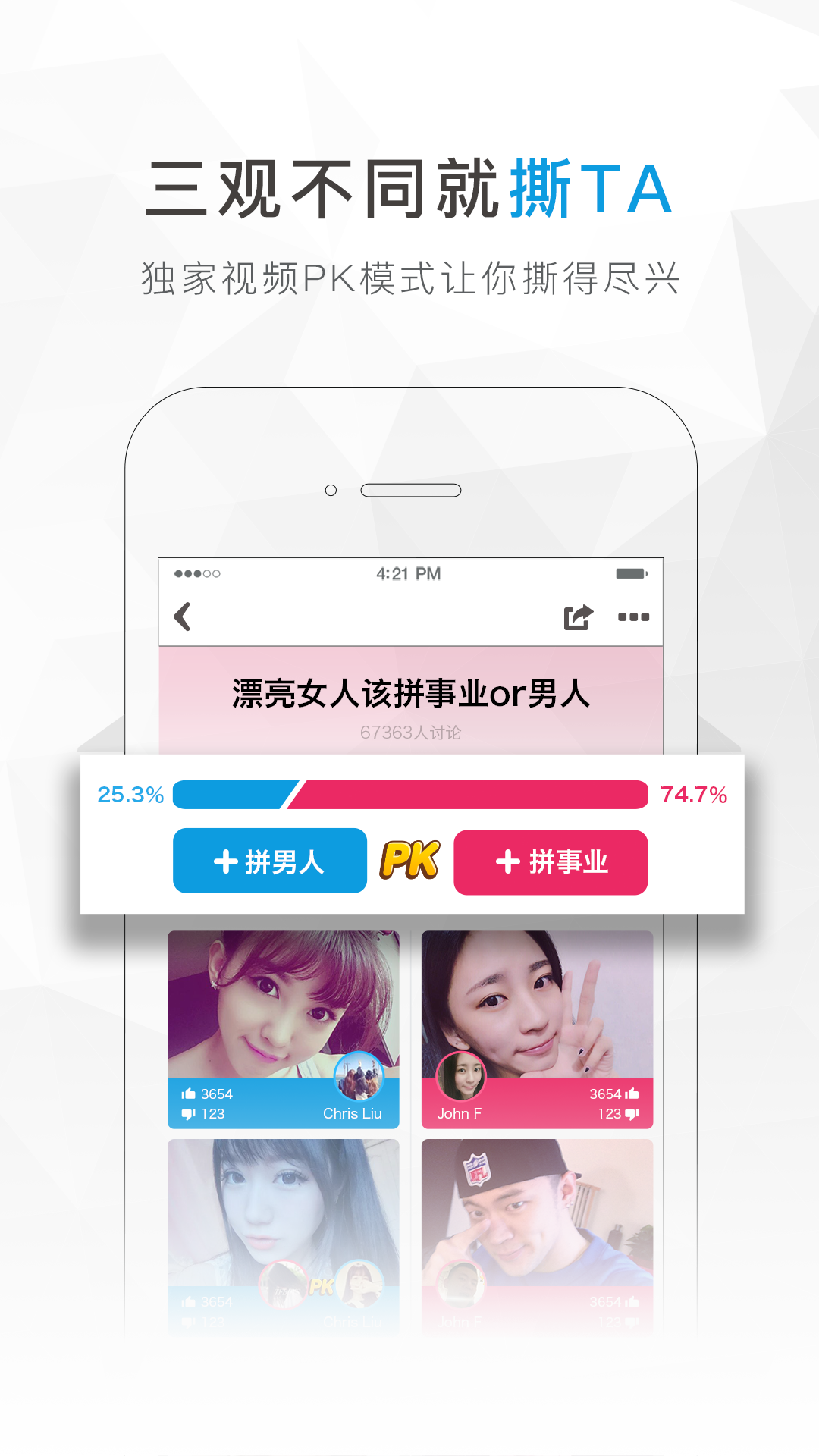 三观不合辩起来,独创视频PK模式,你来我往唇枪舌战,越说越有范,不服来战!