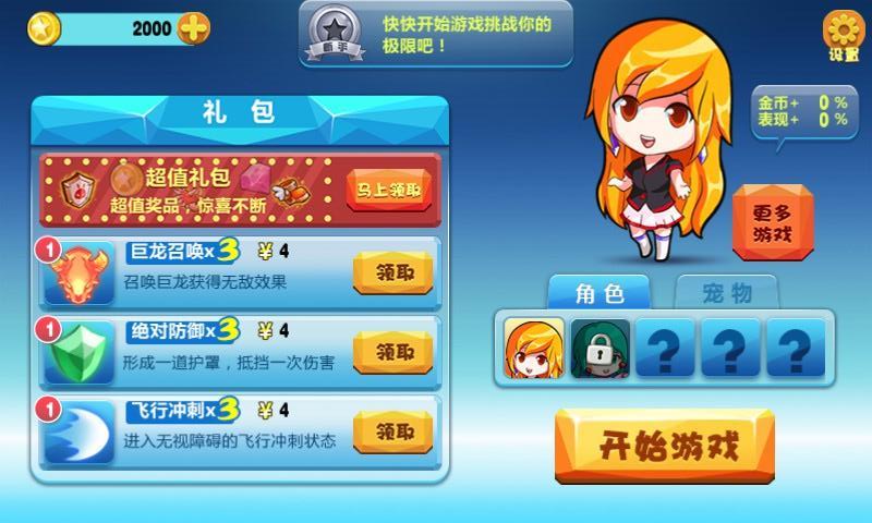 拾取沿途的道具和金币,当下方的英文字母集齐完毕后可以进入奖励界面;