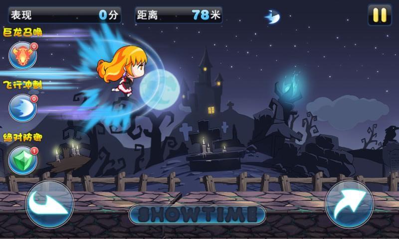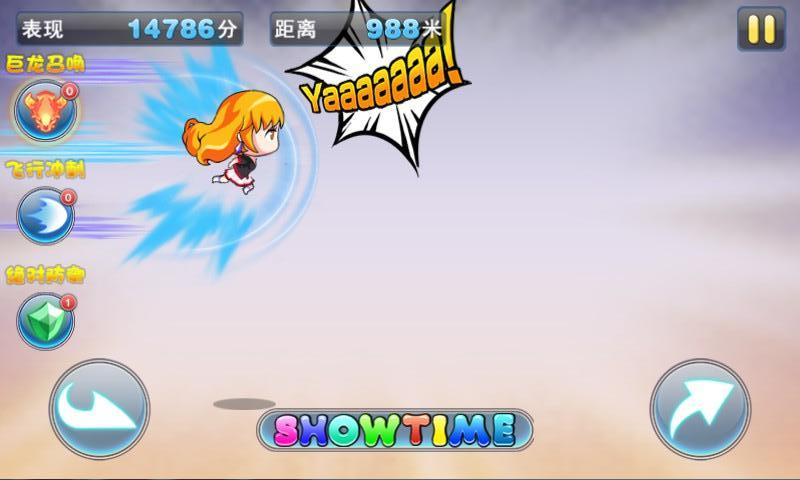 左下角快捷键对应的是人物滑行,右下角的快捷键可以控制人物跳跃;