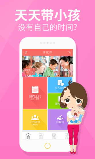 “伴家家”是一键预约幼儿老师到家服务的软件,也是一个汇聚中国优秀幼儿老师的平台。手指动一动,专业幼师请到家。