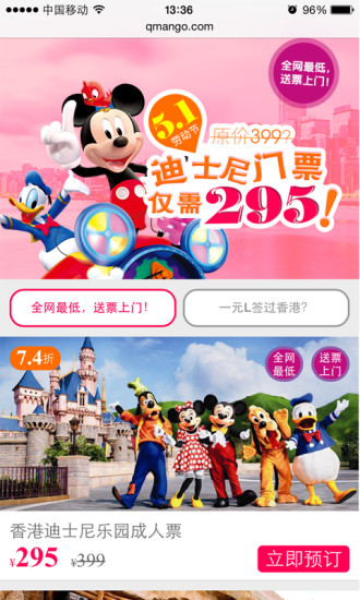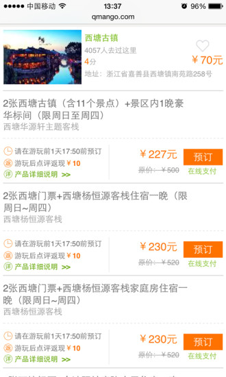 4.支持在线预订国内10000余目的地景点门票、景区现付免排队门票预订服务。