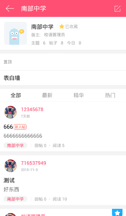 表白墙:每个学校都有属于自己的表白墙,可以表白,吐槽,心愿等