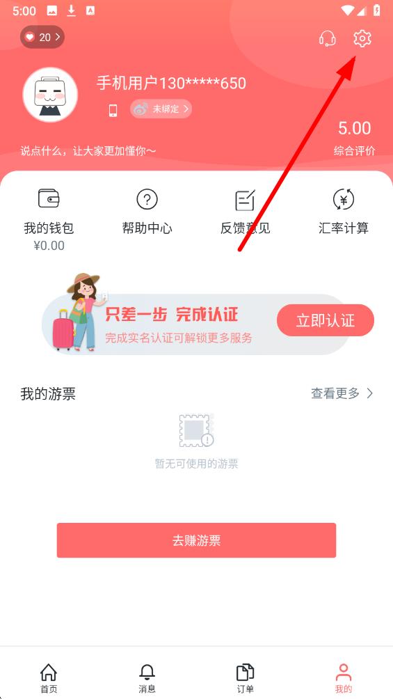 2、在我的页面中,点击右上角的设置图标,进入设置界面。