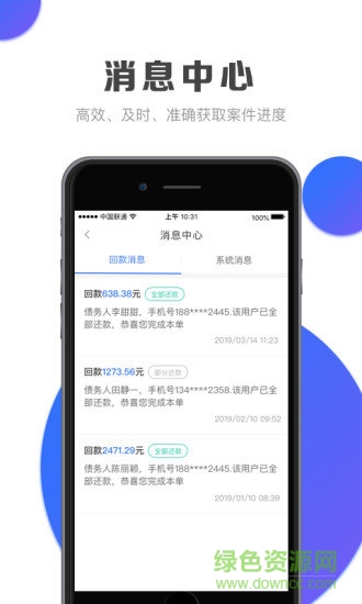 消息中心:内部消息及时通知,高效、及时、准确获取案件进度。