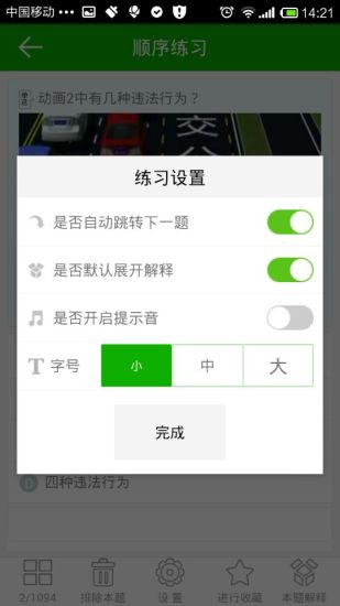 5、科目一模拟考试:章节练习、顺序练习、随机练习、专项练习、模拟考试。