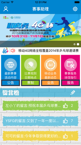 赛事助理app是一款体育赛事类手机软件,用户可以在这里查看最新的赛事和详细活动内容,可以查看选手的比赛风采,可以查看留言和在留言墙留言,喜爱的朋友赶快到绿色资源网下载体验吧!