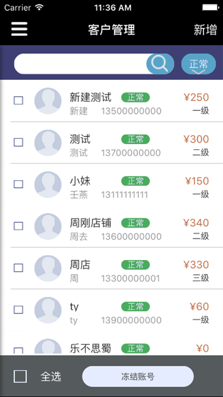 2、客户管理,管理自己的客户,可以随时新增客户,支持直接在线冻结账户
