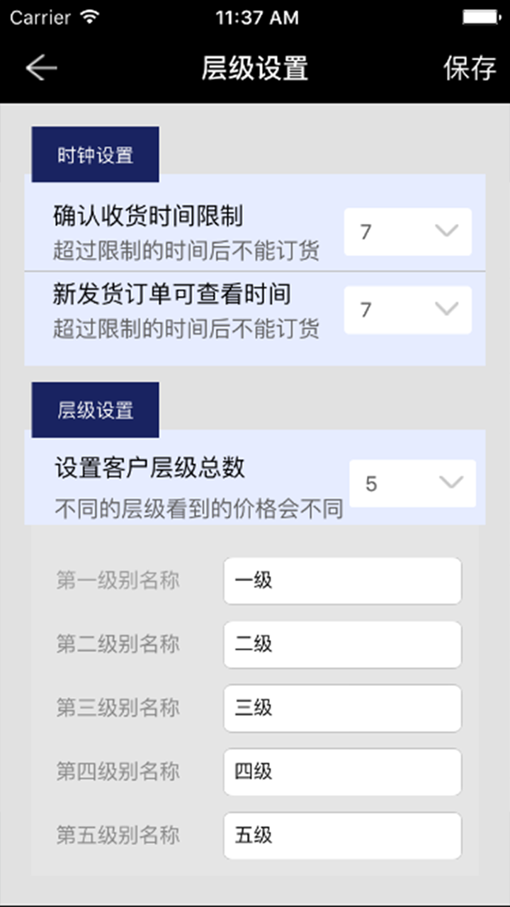 3、层级设置,可以设置确认收货时间以及客户层级总数等